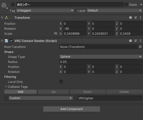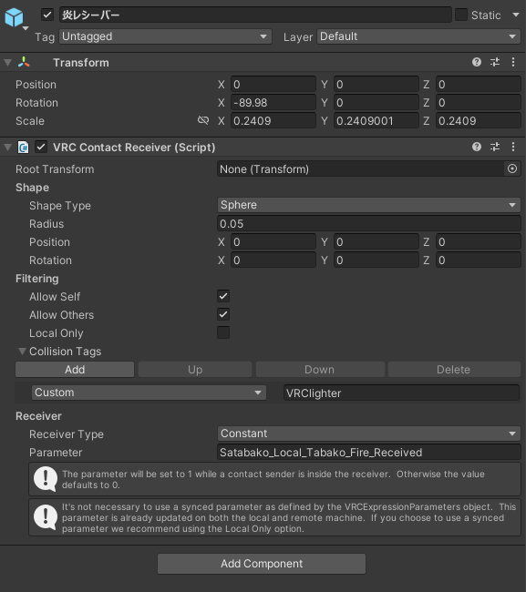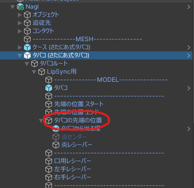 さたにあ式タバコは、タバコの先端同士をくっつけることで火を移すことが出来ます。 その判定の大きさや位置を変更する方法です。