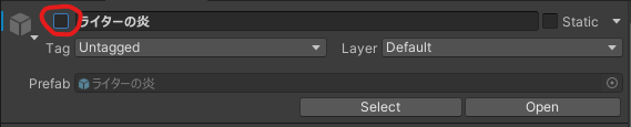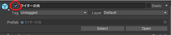 ライター (さたにあ式タバコ) → ライタールート → 炎パーティクルの位置 → ライターの炎 を選択します。