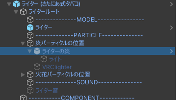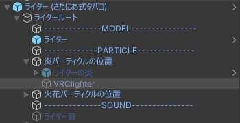 ライター (さたにあ式タバコ) → ライタールート → 炎パーティクルの位置 → VRClighter を選択します。
