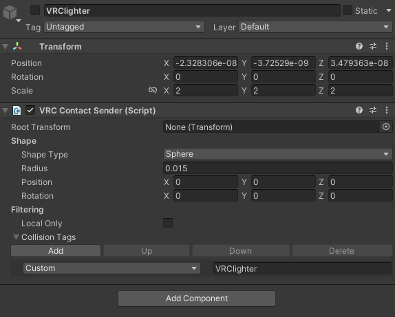 基本的にはタバコ側のコンタクト判定を編集するだけで事足りますが、特殊な差し替えモデル等でライターの炎の判定を編集する必要がある場合はこの方法で編集してください。